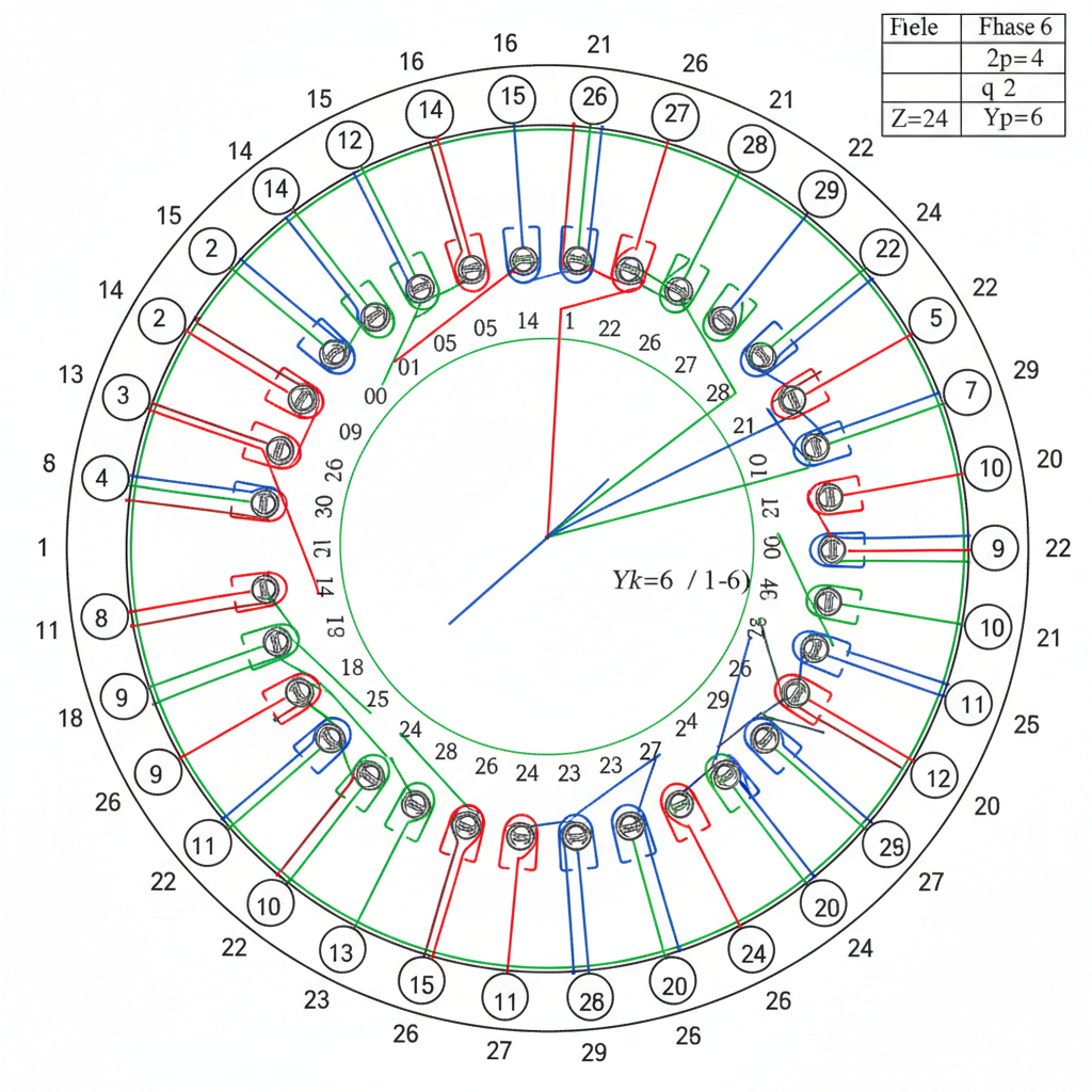 Sơ Đồ & Dữ Liệu Quấn Motor 3 Pha 24 Rãnh: Hướng Dẫn Chi Tiết A-Z (4 Cực, 2 Cực)